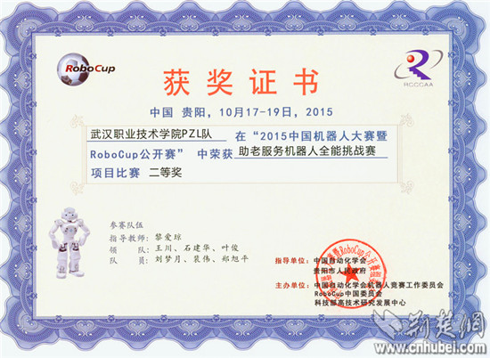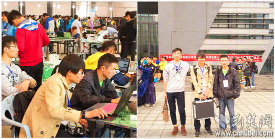 左图为:Robocup比赛现场 右图为:武职代表队队员决赛后合影