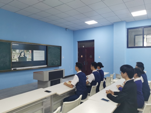 旅游学院空乘19301班同学在教室集中收看 网络19302班女生在宿舍一起收看 应用法语19301万思雨在宿舍收看