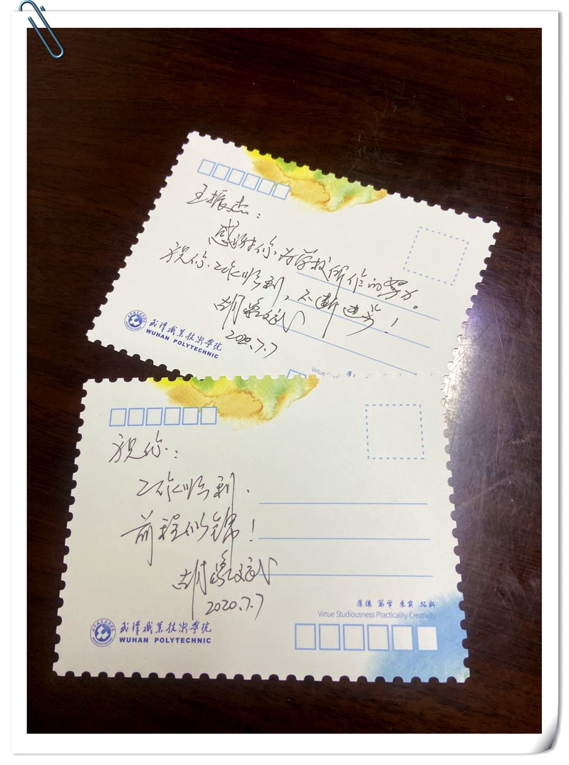 在6月30日举行的2020届毕业典礼上,校领导为他们佩戴大红花,授予他们“2020年“学校青年标兵”荣誉称号。校党委副书记胡象斌手书明信片勉励两位志愿者,希望他们在深学实干中转变角色,在实践磨砺中成长成才,在扎根基层中坚守初心,为志愿服务这面旗帜增光添彩。