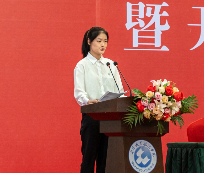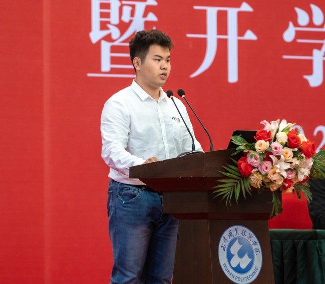来自计算机技术与软件工程学院20304班的邹安琪作为新生代表发言。她激动地说:“同学们,从此往后,我们不再是羽翼未满的雏鹰,不再幸得父母的庇护,我们是使命不凡的一代,更是承载希望的一代,我们将手握足够的自由去乘风破浪。”邹安琪和全体新生互勉,要主动拥抱时代的变革与创新,学会自主学习、锻炼综合能力、培养健全人格,在武职的三年里,干十件事、读百本书、记千日记、行万里路,努力成为“人见人爱,不可替代,丰富多彩”的武职人!