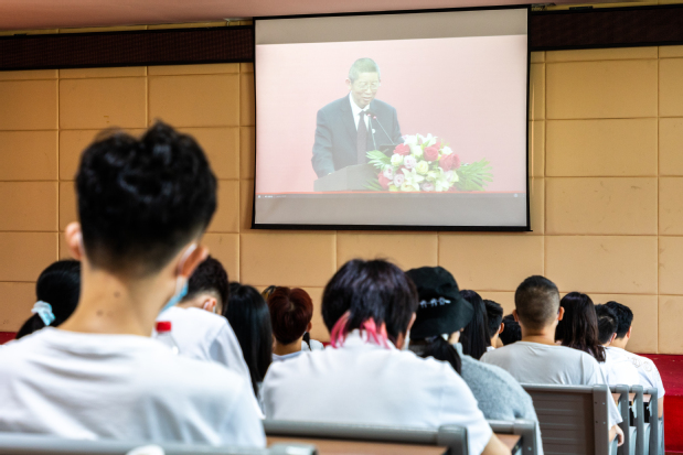 在嘹亮的国歌声中,2020级新生开学典礼暨开学第一课正式拉开帷幕。李洪渠为7500名新生讲授了题为《开启成长新航程,谱写人生新篇章》的开学第一课。