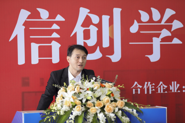 计算机技术与软件工程学院网络技术专业教师江岚作为教师代表发言。他在发言中介绍了信创产业的大背景,并寄语全体信创学院学子要树立远大理想和目标,传承艰苦奋斗的优良作风,培养探索求知的首创精神,德技双修,知行合一,团结互助,厚积薄发,努力成为报效祖国的信创精英。