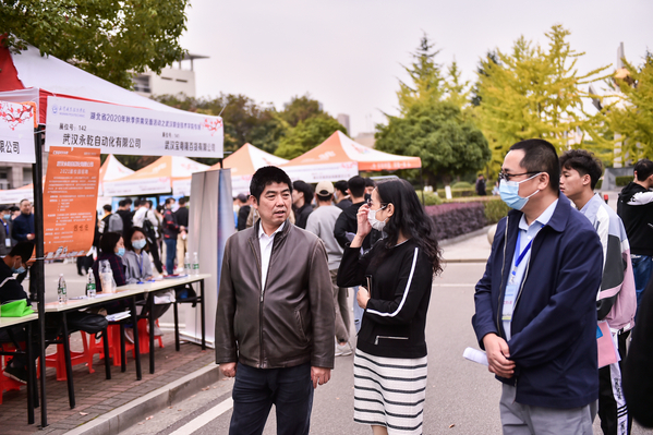 武职网讯(党委宣传部 陈峰 摄影 大学生记者团 盛虎 陈东 李奎 胡爱妮) 10月24日至25日,由湖北省高等学校毕业生就业指导服务中心主办,武汉职业技术学院承办的湖北省2020年秋季供需见面活动之武职专场(以下简称秋招会)在关山校区凌曦广场举行。来自全国各地的306家用人单位参加了本次活动,提供岗位1.3万余个,涉及机械制造类、计算机信息服务类、文化创意类等众多行业,吸引了6500余名毕业生进场求职。