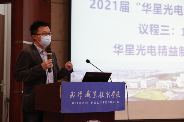 华星光电精益制造处总监徐巍巍对武职历年来为华星源源不断地输送高素质技术人才表示感谢,介绍了华星在国内的布局、半导体显示行业的发展趋势及未来前景,表达了华星与武职联合培养人才的决心,以及期望进一步深化校企合作的愿景。
