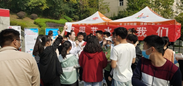 武职网讯(通讯员 何岩 刘璐)11月7日正午时分,暖阳高照,关山校区钟楼广场前帐蓬、展板列阵,人头攒动,由学校团委、后勤保障处联合主办,上海威派格智慧水务武汉分公司协办的“校园节水,我们在行动”节水宣传日活动在此举行。副校长刁元斌参加活动并在节水倡议横幅上签名,呼吁全体师生节约用水、共建节水型校园。