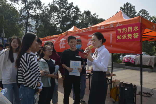 校团委社团部学生负责人、空乘19302班唐小洁宣读了《大学生节水倡议书》,号召全校学生树立主人翁意识,爱校如家,积极投入到节约用水行动中来。