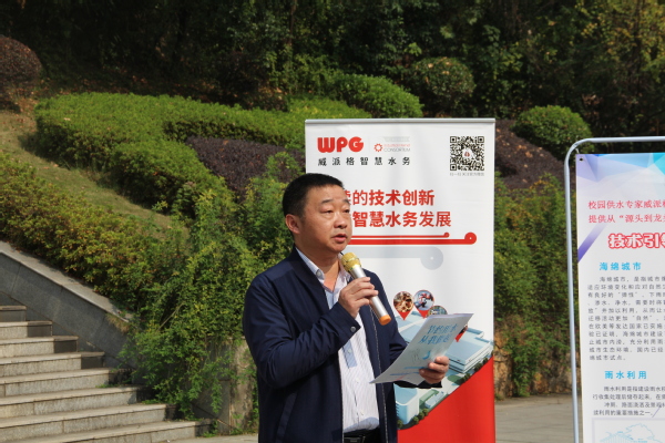12点30分,后勤保障处处长应文豹致辞。他宣讲了习近平总书记关于厉行节约、保护水资源方面的重要论述,阐述了节水的意义与目的,并宣布活动开始。
