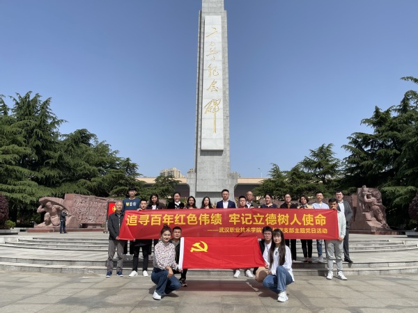 纪念碑左右两侧的浮雕,生动地再现了武汉各工团声援罢工和铁路工人赤手空拳与全副武装的反动军警英勇搏斗的壮烈场面,在场师生无一不被这动人场景以及革命先烈的斗争伟绩所震撼,所感召。党支部书记钟君同志现场给全体支部党员、入党积极分子、优秀学子代表讲了一堂题为《传承红色基因牢记初心使命》的生动党课。他讲到:二七大罢工是党领导的第一次工人运动高潮的顶点。这次大罢工充分显示了中国工人阶级伟大的团结与战斗力量,扩大了中国共产党在全国人民中的影响。它虽然遭到失败,但却以工人的生命和鲜血进一步唤醒了中国人民,使他们更明确地认识到帝国主义和封建军阀是中国各族人民不共戴天的敌人,必须与之斗争到底。他强调全体党员同志要结合党史学习教育要求,认真学习“四史”做到知史爱党、知史爱国,在学习领悟中坚定理想信念,在实现中华民族伟大复兴中国梦的征程中践行初心使命。