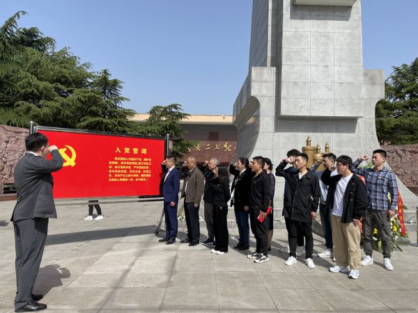 站在由毛泽东同志亲笔题写的“二七烈士纪念碑”前,全体师生党员庄严地举起右手,面向鲜红党旗,由支部组织员程若沁同志带领重温入党誓词,以铮铮誓言向革命先烈们致以深切缅怀和崇高敬意。