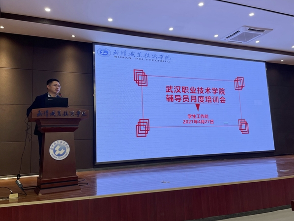 (通讯员 伊力努尔·艾克白尔)4月27日下午,武汉职业技术学院2021年第三期辅导员工作培训会在凌峰楼C11举行。本期培训会以业务工作培训和辅导员工作研究为主线,邀请了武汉市关南派出所所长黄荣做“防电信网络诈骗”专题培训、中南财经政法大学辅导员尼加提·艾买提以“思想政治教育与铸牢中华民族共同体意识结合的创新实践——美美晓南民族团结教育工作室”做省级高校辅导员工作室创建分享。保卫处处长李永林、副处长项洪文、驻校民警宋功俊、各二级学院分党委副书记以及专职辅导员共计100余人参加培训会。培训会由学生工作处处长钟君主持。