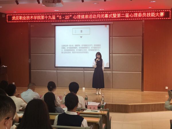 武职网讯(通讯员 管斌)5月27日下午,由学校心理健康教育中心举办第十九届“525”心理健康活动月闭幕式暨第二届心理委员技能大赛在图书馆报告厅举行。各二级学院心理辅导员及大学生心理健康中心全体老师参加活动并担任评委。全体关山校区2020级心理委员及选手助力团共计170余人观看比赛。