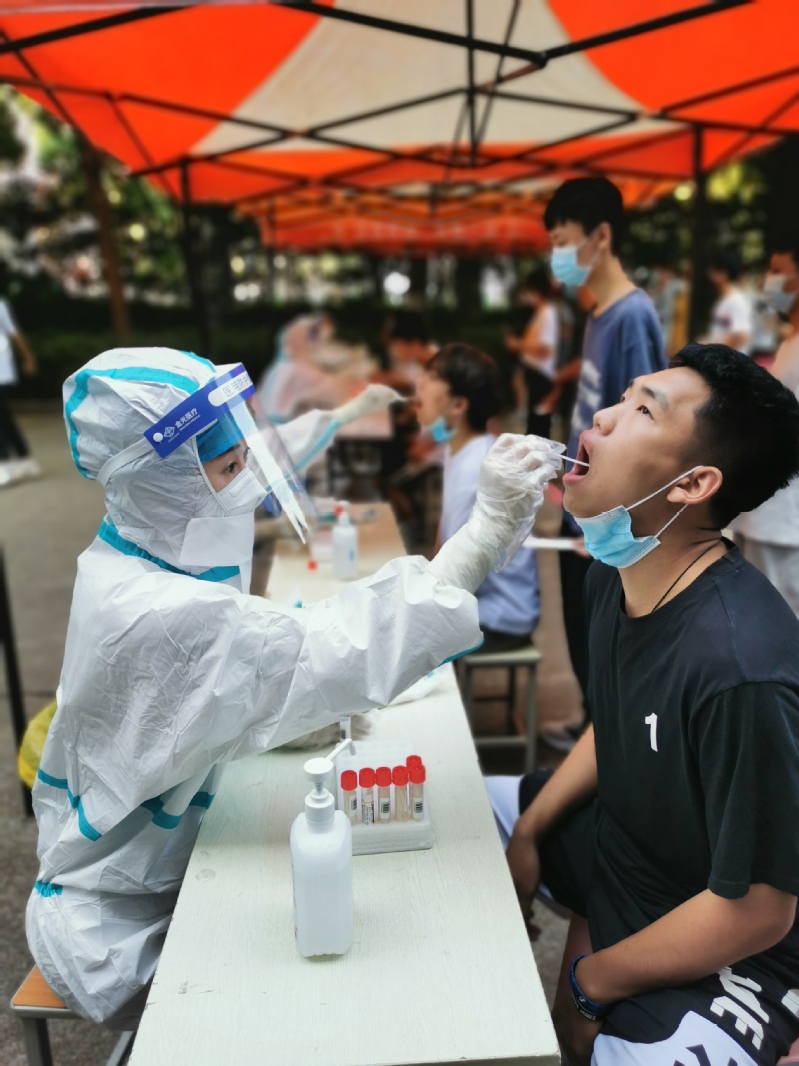 计算机技术与软件工程学院大三学生胡轩说:“学校组织我们进行核酸检测,从列队等候到完成采样,整个过程不到10分钟。”