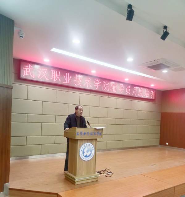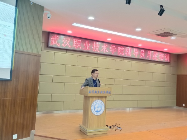 学生工作处处长钟君以辅导员队伍师德师风建设为主题,深入解读《新时代高校教师职业行为十项准则》、《武汉职业技术学院师德师风负面清单和失范行为处理办法(试行)》(武职党[2019]32号)两个文件精神,以典型案例解析为警示,希望辅导员增强责任感和使命感,以身作则,以正确的思想、高尚的道德、良好的品行感染学生、熏陶学生、影响学生。
