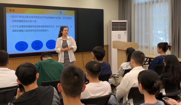 会议中,新疆派驻教师强调了本次座谈会的目的和初衷,并从学校概况、少数民族学生教育服务管理工作、奖助学金情况、相关技能资格证书考试、近期网络安全、女性教育安全等六个方面做了详细讲解,以此激励同学们以学业为重,激发同学们的学习动力,勤学奋进。
