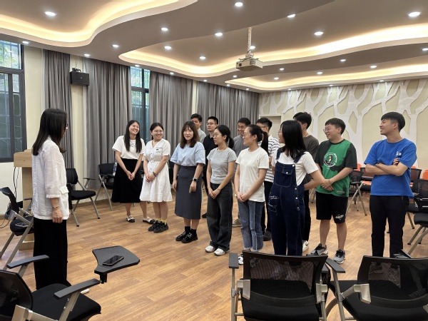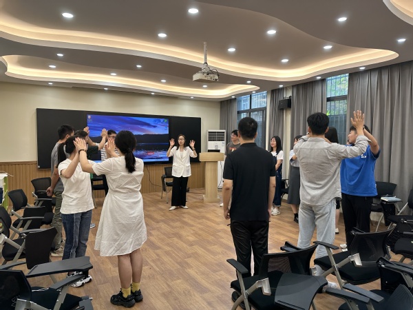 心理健康教育中心办公室主任吴量带领13名辅导员们亲身体验“非语言自我介绍”、“多元排队”、“手指抓逃”、“颠三倒四”等形式多样的团辅活动,通过这些破冰小游戏,辅导员们纷纷打开“话匣子”,结合自身学生工作经历和培训内容,讲述了心得体会与工作设想,同时表示将以饱满的热情、昂扬的斗志、奉献的精神投入到接下来的学生工作中。
