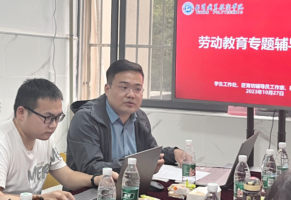 匠育坊工作室周昱成与深圳希尔智慧科技集团有限公司徐欢在会上进行了专题分享。周昱成首先总结匠育坊辅导员工作室劳动教育开展情况及针对存在“劳动基地利用率低”的问题作出说明。并就下一步改变劳动教育基地责任划分形式、拓宽劳动教育实践课程安排、挖掘一站式社区劳动教育资源提出解决方案。徐欢针对学程导航平台展开教学,从活动组织授权、活动线上报名、活动学时分配等方面授予了平台应用技巧。