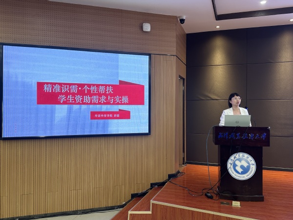 外语外贸学院辅导员彭媛围绕“精准识需 个性帮扶”,解读学生资助政策,分享实务操作方法。她强调坚持“隐私保护”和“公开公平”原则,通过前置筛查与入学后家访精准认定资助对象,依托“三公开、两审核”机制确保程序规范,实现资助与育人深度融合。