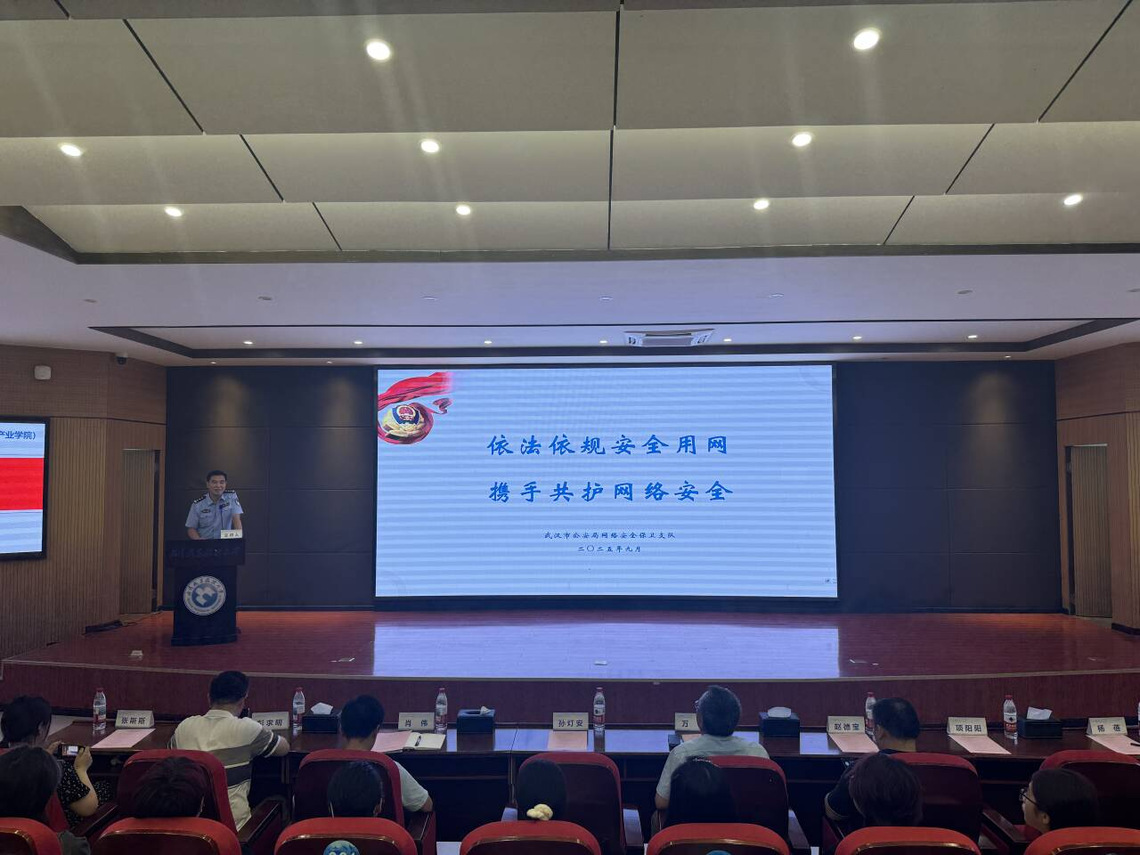 典礼特邀武汉市公安局网络安全保卫支队专家孙灯安,以《依法依规安全用网,携手共护网络安全》为题,为新生们讲述安全法制教育第一课。他围绕《网络安全法》《数据安全法》等法律法规,结合国家网络安全战略和典型网络攻击案例,从“技术防护”到“法律底线”,深入剖析了网络安全的重要性及核心要求,帮助新生树立“安全即生命”的行业意识。