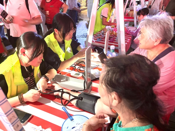 活动现场,生物工程学院志愿者摆设的两个服务摊位前人头攒动。在健康检测区,学子们熟练地操作着血压计、血糖仪,为居民仔细测量。“大爷,您的血压有点偏高,平时饮食上要少吃咸的,多吃点蔬菜水果。”药管24301班冉莫愁边记录边耐心叮嘱。老人笑着点头,连声道谢:“你们这些孩子真贴心,这些健康知识太有用了。”