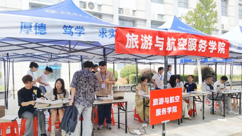迎新现场的旅游学院新生专属补给站,始终涌动着温情,学院将“德智体美劳”全面发展的要求,化作三份“成长礼”。