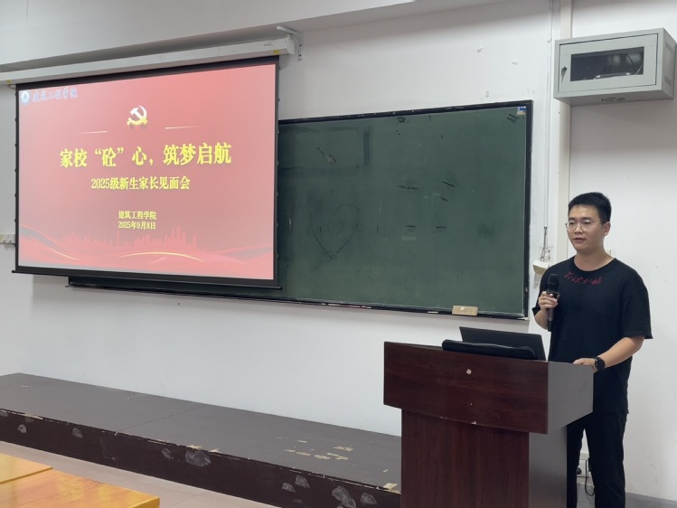 “学生成长主场秀” 环节让家长更为清晰地看到学院育人成果。世界职业院校技能大赛土建施工赛道金奖团队核心成员、建工23303班周想,2025年国际大学生创新大赛省赛金银奖得主、造价 23303班郑文慧均为预备党员,先后上台分享备赛时的协作点滴、攻克专业难题的坚持、平衡学业与实践的心得,展现了学生在学院的成长潜力,也为新生提供了可借鉴的 “成长范本”。