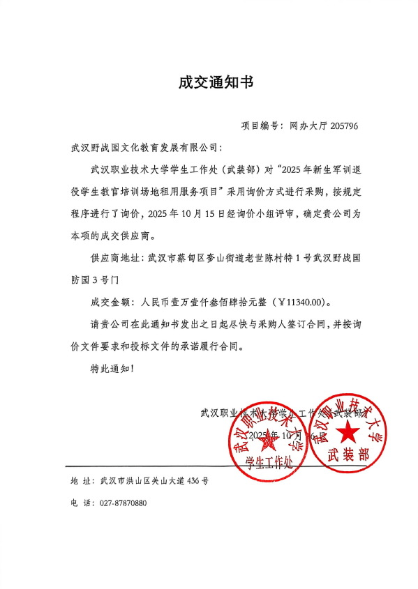 2025年新生军训退役学生教官培训场地租用服务项目中标供应商公示