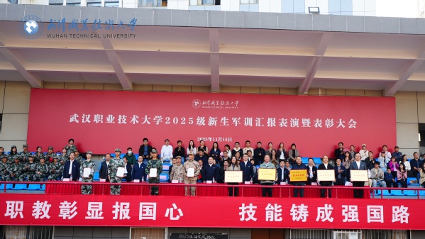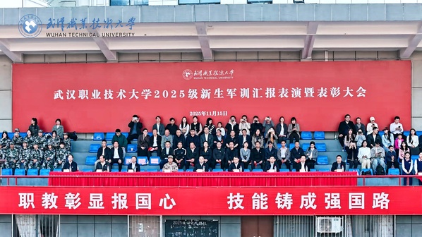 新闻网讯(通讯员史可 大学生记者刘一诺 摄影王诚、孙昌伟) 冬阳和煦,旌旗猎猎。11月15日下午,武汉职业技术大学2025级新生军训汇报表演暨表彰大会在光谷校区田径场盛大举行。