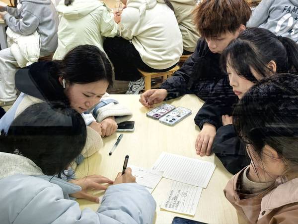 互动环节中,现场学子分组扮演HR角色,通过三次递进式观看同一段模拟面试视频,依次完成个人选择、组内研讨、集体交流,最终达成共识,现场氛围热烈。主讲人杨瑾随后逐一点评六位模拟面试者的优劣,引导学生识别岗位核心需求,掌握自我展示与岗位需求精准对接的方法,将抽象的职业标准转化为可感知、可操作的实践技巧。