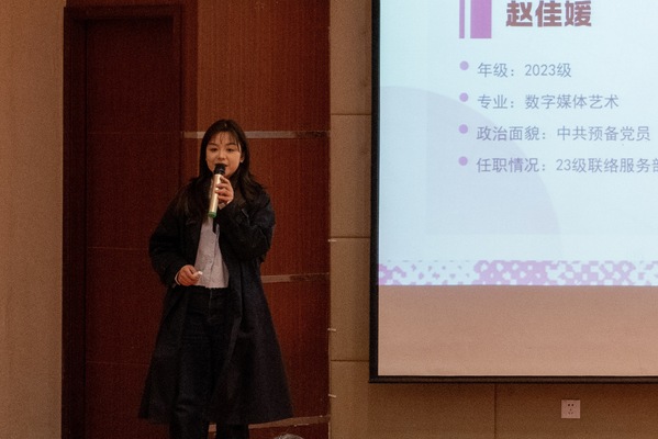 时尚与传媒学院的易蓉露佳用“尽精微、肯攀登、见天地”九个字概括自己的成长历程,分享从课堂作业到技能竞赛、从恩施支教到马来西亚研学的多重突破与收获。针对“如何克服英语汇报焦虑”,她鼓励大家树立“内容优于完美”的心态,通过充分准备与积极表达积累自信,勇敢展现自我。