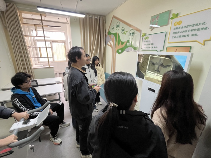 与此同时,一站式学生社区的心理舒缓活动成为日常“充电站”。商学院充分利用社区资源,持续开放动感健身单车、解压玩具、体感宣泄仪等设备资源。课余时间,学生们或在运动中挥洒汗水释放压力,或通过用体感宣泄仪、玩桌游放松身心。金融25301班李想说:“每天下课后去社区骑20分钟动感单车,再玩一会儿拼图,白天的学习压力都没了,晚上睡觉也更踏实。”