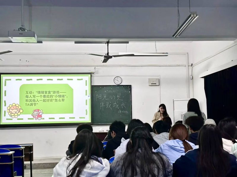 随着系列活动推进,心理关怀逐渐融入校园日常——心理主题班会在各班级灵活穿插开展。班会中,各班通过视频观看、小组讨论、知识问答等形式,普及心理健康知识。有的班级聚焦“宿舍人际关系”,探讨“如何与室友友好相处”;有的围绕“学习压力管理”,分享高效复习方法与劳逸结合的小技巧。工管25302班则创新开展“情绪盲盒”游戏,学生匿名写下近期的“小情绪”,投入盲盒中随机抽取分享,大家围绕抽到的“心情纸条”共同探讨调节方法,在互动中化解心结、彼此赋能。