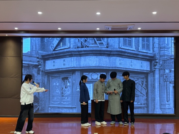 制药25305班的《南京照相馆》对经典影视片段进行创新性改编,以一位青年观看相关电影后的内心感受为切入点,她徘徊、哀伤、愤懑,与剧中人物展开跨越时空的对话。演员们的精彩演绎深深吸引了现场观众,生动展现了山河破碎之际小人物的顽强抗争,同时彰显了中华民族坚韧不拔的民族精神。