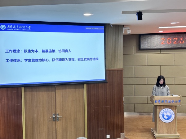 学工处陶舒处长以《让“小家”温暖有力,助“大家”蒸蒸日上》为题,全面总结了2025年学生工作成效,明确了2026年重点工作任务,她提出要以“有温度、有底气、有追求”为标尺淬炼自身素养;以“懂学生、爱学生、育学生”为准则筑牢育人初心;以“成长有迹可循、付出有获可感、价值有光可耀”为目标凝聚育人合力,当好学生成长路上的引路人,推动学生工作提质增效。