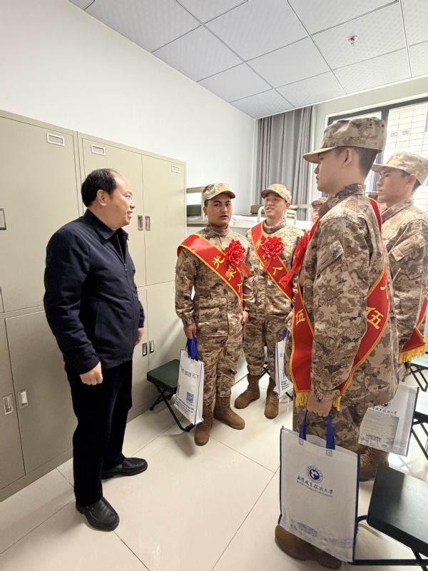 刁元斌代表学校向即将步入军营的学子们致以诚挚祝贺,并提出殷切期望。他勉励全体预定新兵,要坚定理想信念,始终牢记听党指挥这一强军之魂,永葆政治本色,做党和人民的忠诚卫士;要珍惜军营这座大熔炉的淬炼机遇,发扬不怕苦、不怕累的精神,刻苦训练、精进素养,努力成长为有灵魂、有本事、有血性、有品德的新时代革命军人;要永葆学子本色,时刻牢记学校嘱托,将所学专业知识与强军实践深度融合,在军营建功立业,学校永远是大家最坚实的后盾。
